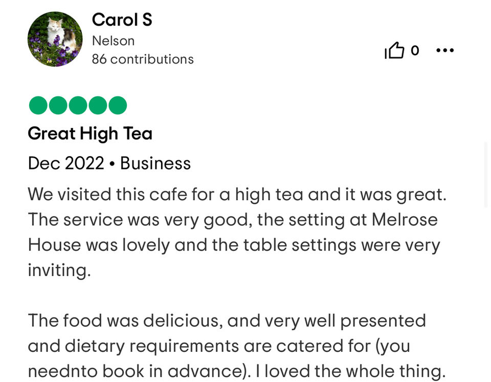 Welcome to our historic house cafe in sunny Nelson! We are proud to offer a variety of dietary-friendly meals, treats, and High Teas for you to enjoy. Come and experience our charming atmosphere and delicious food. We can't wait to see you!